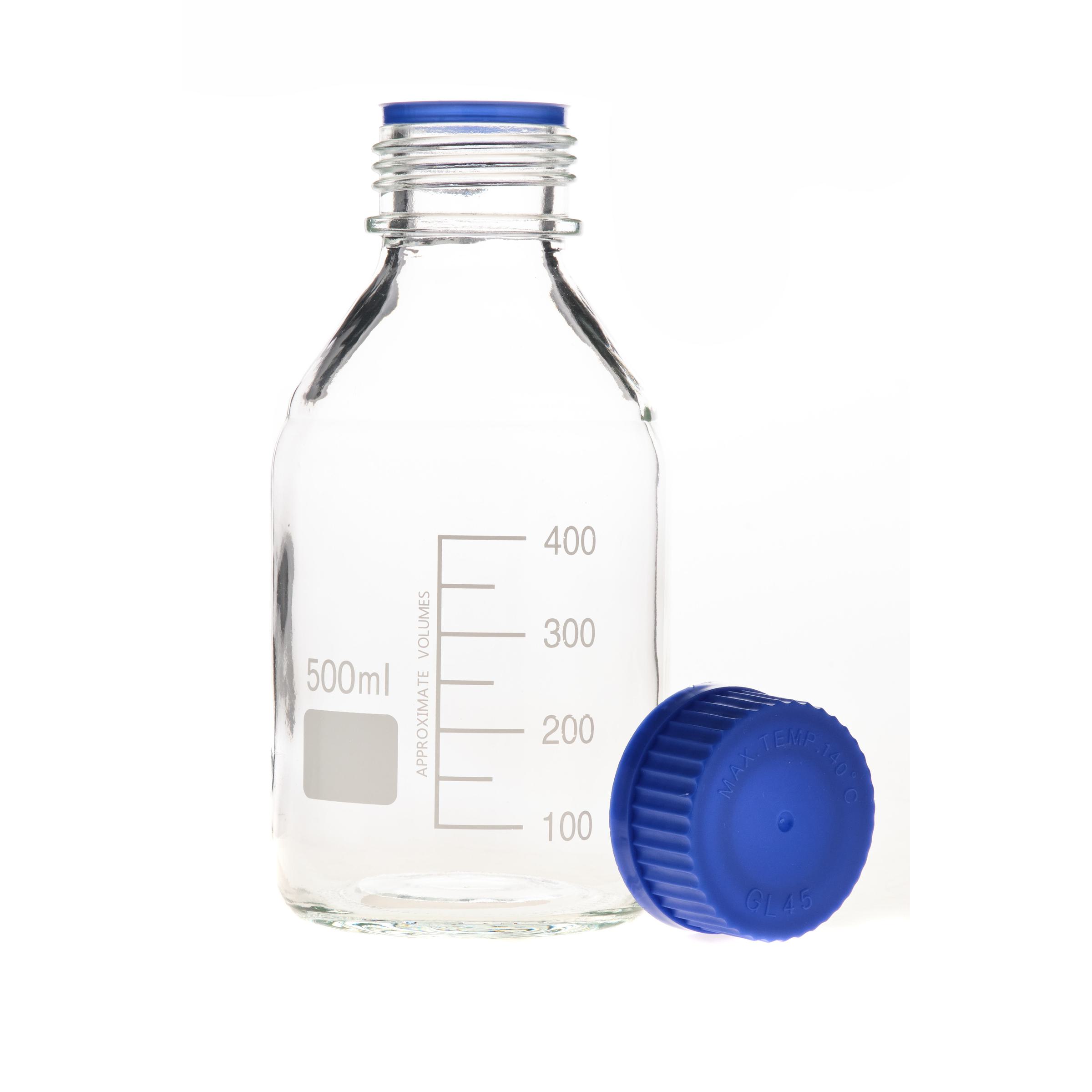 Банка лабораторная, 500 мл, светлое силикатное стекло с узким горлом, шкалой и крышкой - предназначена для хранения химических реактивов.