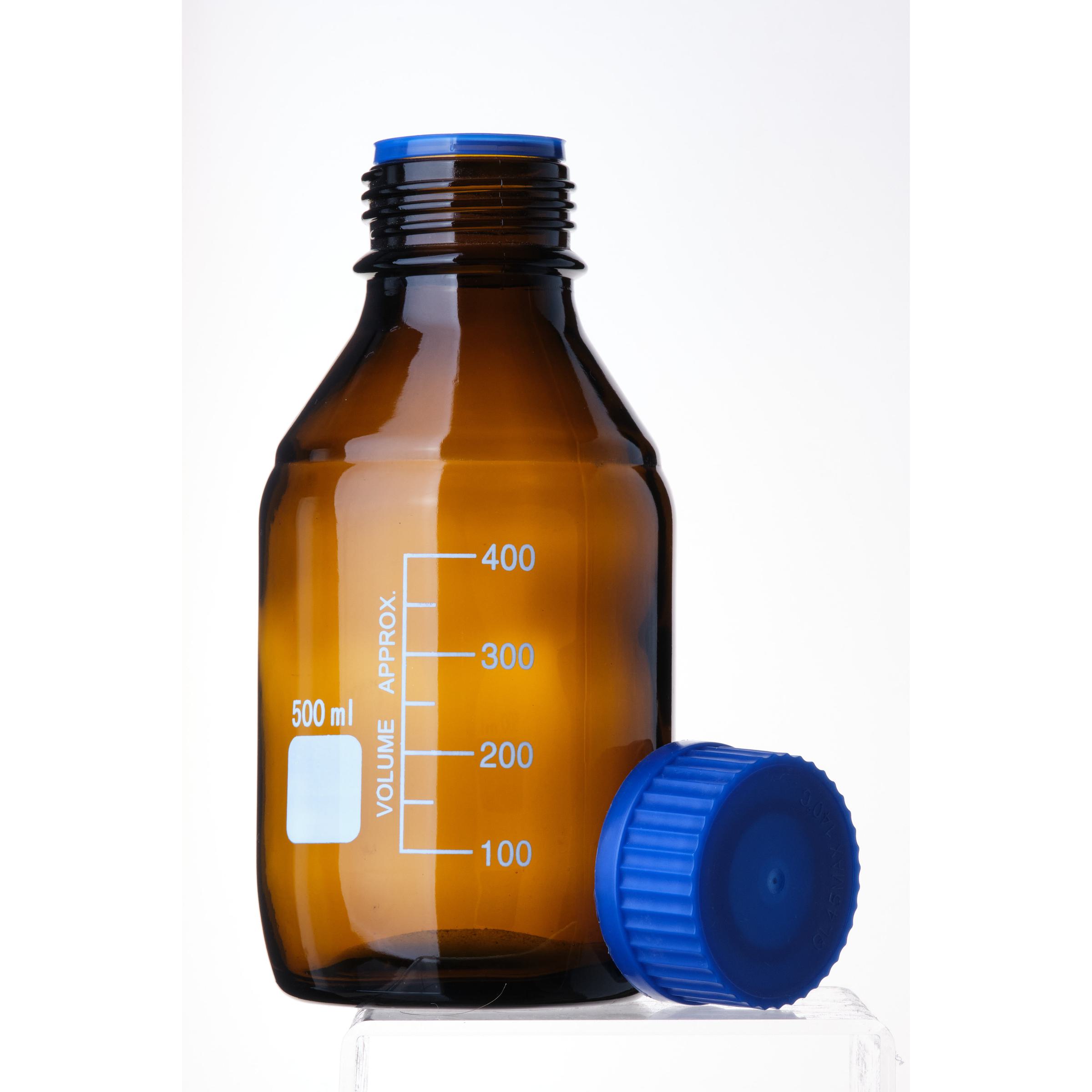 Банка лабораторная, 500 мл, темное боросиликатное стекло с узким горлом, шкалой и крышкой - предназначена для хранения химических реактивов.