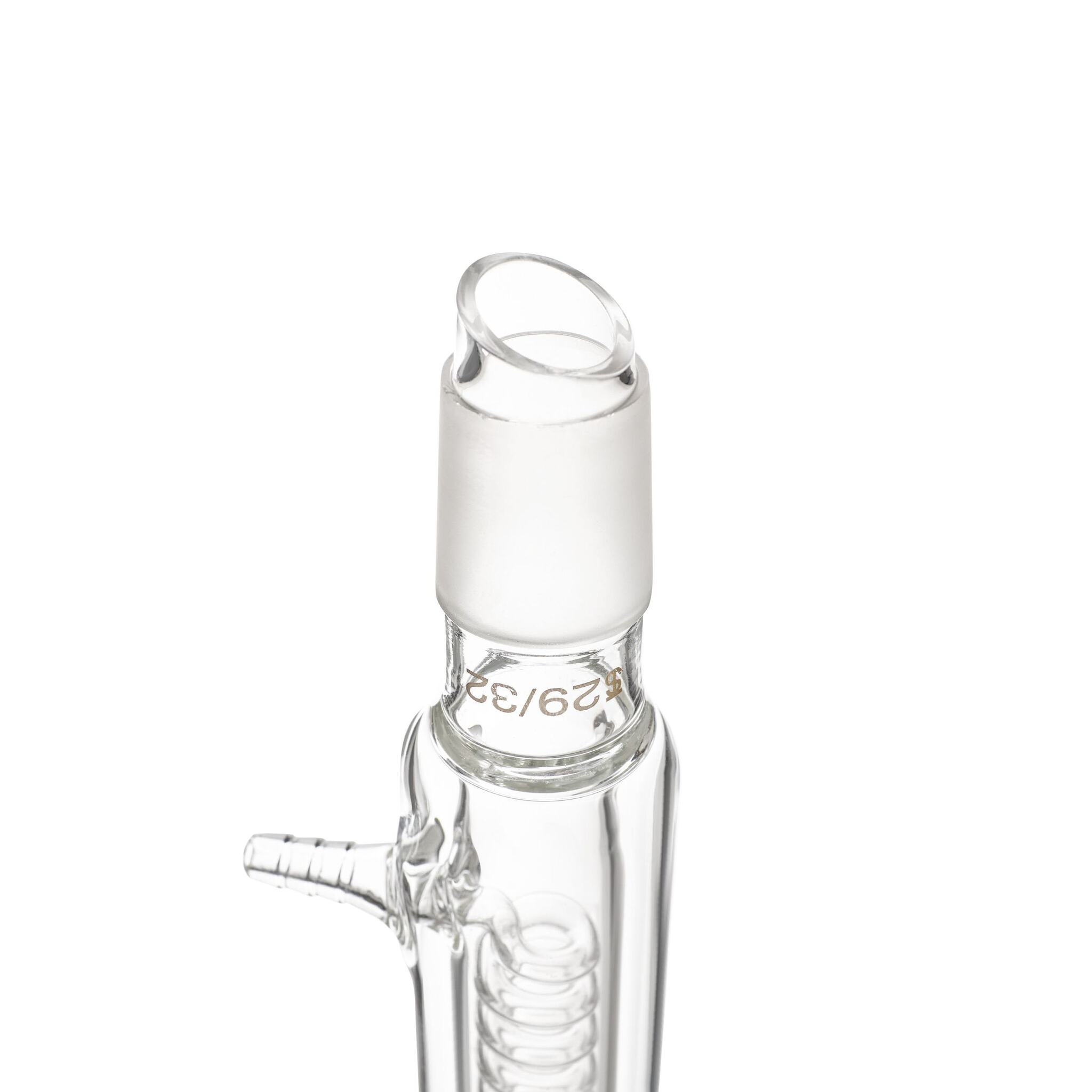 Изделие изготовлено из специального лабораторного стекла, обладающего повышенной теплоемкостью, превышающей показатели любого металла. За счет данной характеристики, стеклянный холодильник небольшого размера будет эффективнее любого холодильника из металла. Холодильник можно вставить в любую колбу с соответствующим шлифом для прямого слива вещества в другую тару без применения шланга.