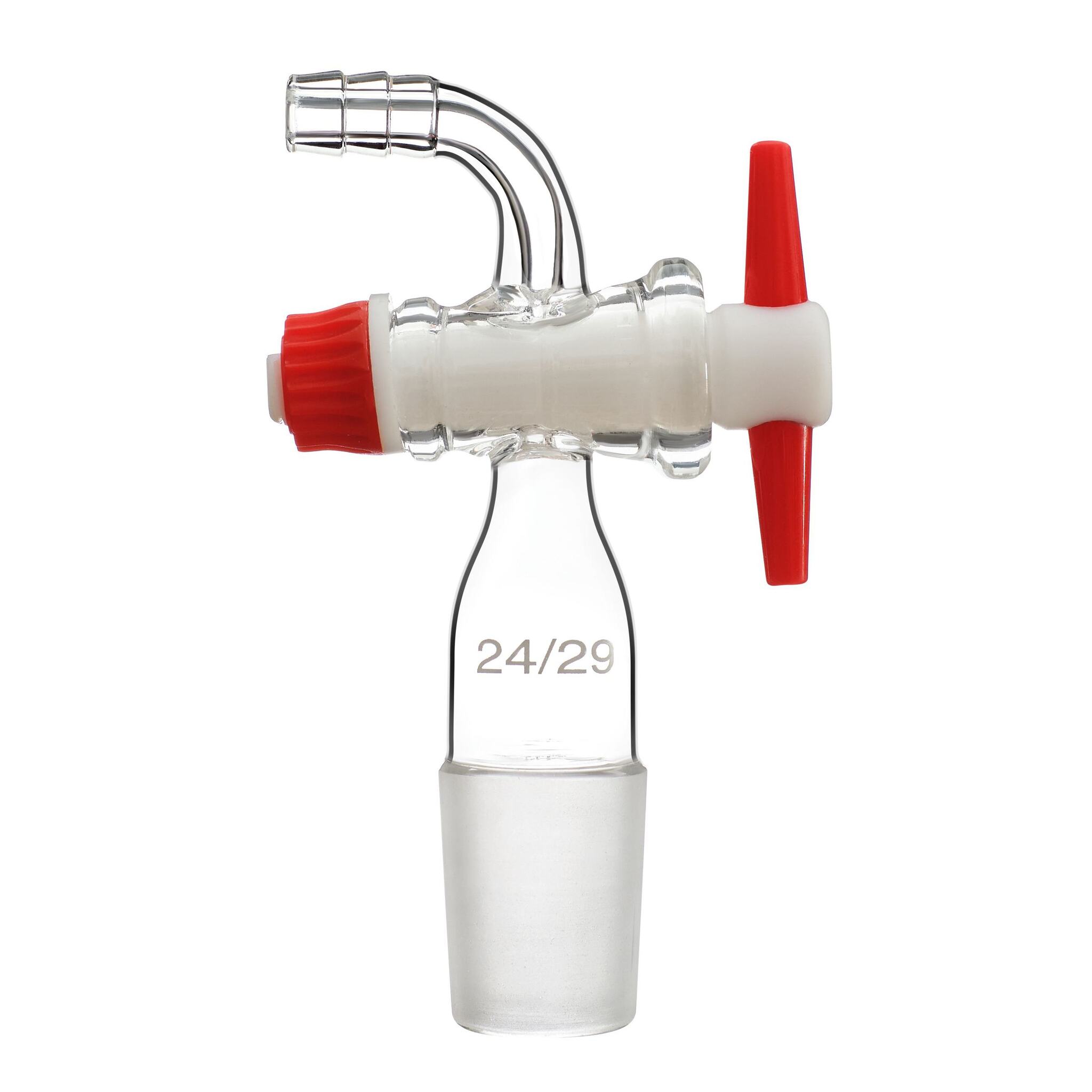 Керн 24/29 с изогнутым отводом, 90°, с краном PTFE - используется в качестве соединительного элемента при сборке лабораторных установок, аппаратов и приборов для перегонки жидкостей.