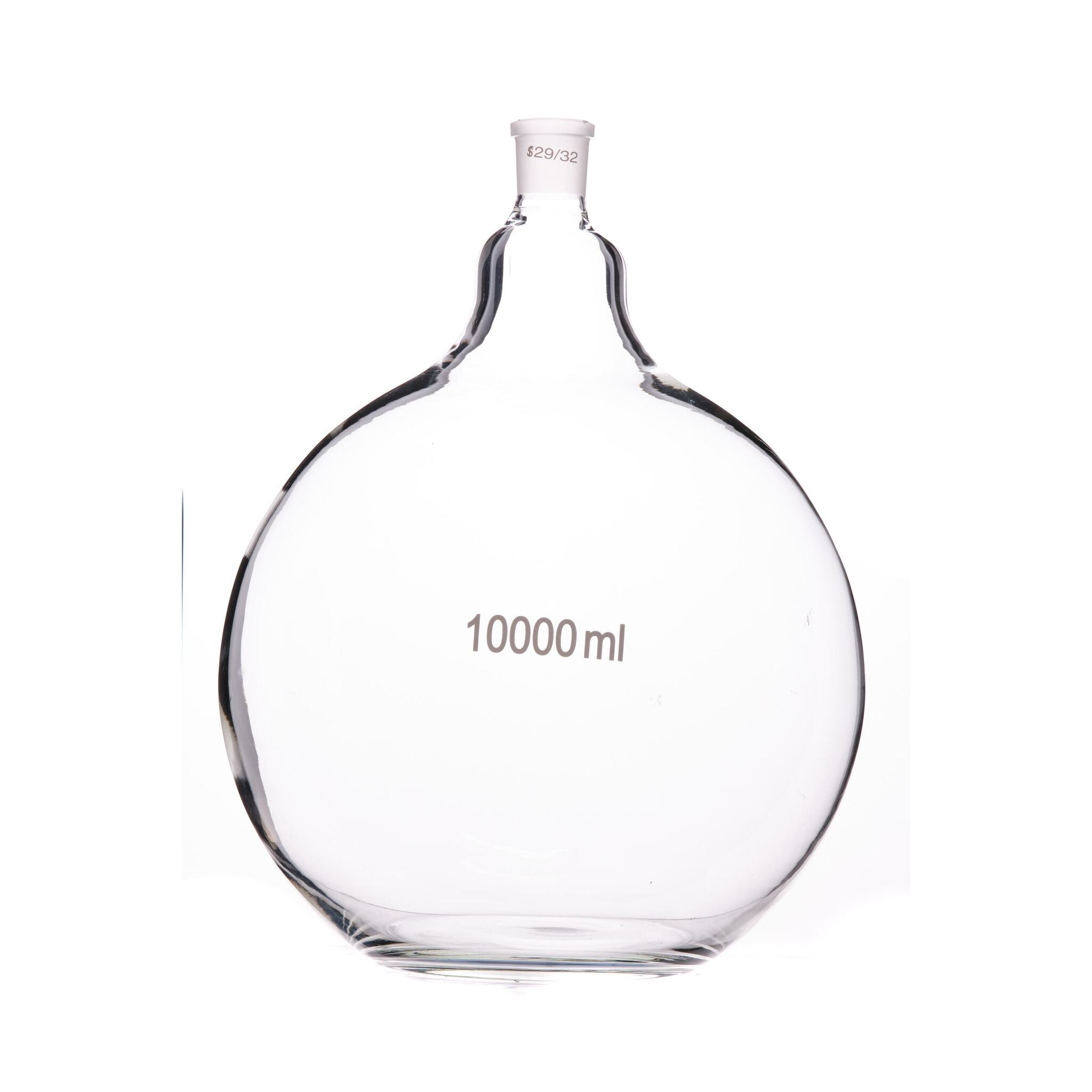 Колба плоскодонная, 10000 мл, шлиф 29/32 - изготовлена из термостойкого стекла и отлично подходит для различных химических экспериментов. Стекло химически-нейтрально и может выдержать не только жар, но и воздействия самого широкого спектра веществ.