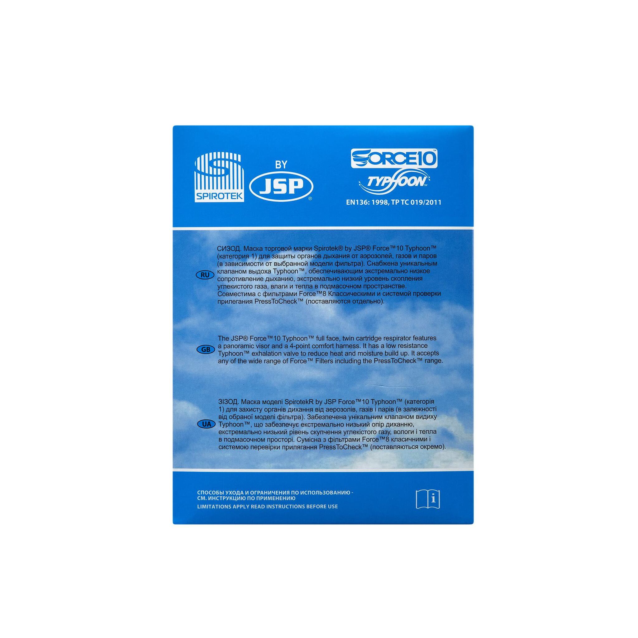 Полнолицевая маска SPIROTEK FORCE 10 обеспечивает комбинированную защиту как от газов и паров, так и от аэрозолей, R, класс защиты - до 200 ПДК, с клапаном выдоха Тайфун. Панорамный обзор с экраном первого оптического класса обеспечивает идеальную видимость без искажений. Может использоваться как с классическими противоаэрозольными, противогазовыми и комбинированными фильтрами (байонетное крепление), так и с фильтрами Press-To-Check (с проверкой правильности прилегания полумаски). Линза устойчива к химическому воздействию, рекомендуется использовать с защитной пленкой. Конструкция клапана выдоха Тайфун уникальна, обеспечивает низкое сопротивление дыханию. Удобна и проста в уходе.