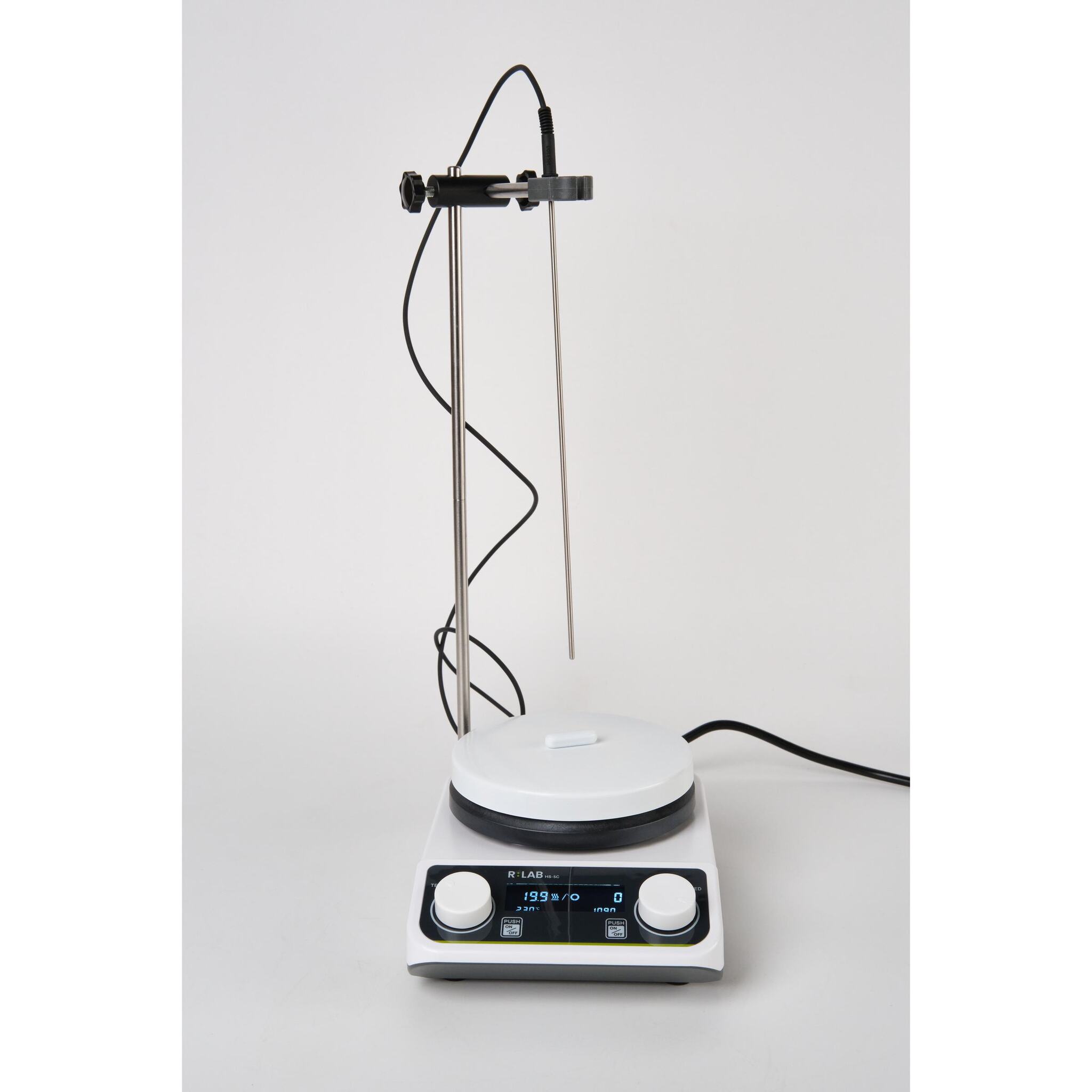 Мешалка магнитная с подогревом RLAB HS-5C, 200-1500 об/мин, 280℃, 135 мм, 3 л — оборудование, используемое для перемешивания жидких субстанций при помощи магнитного якоря, подготовки проб и проведения лабораторных анализов. Помимо функции перемешивания, обладает и функцией нагрева, что позволяет расширить достуный перечень химических реакций или ускорить их.