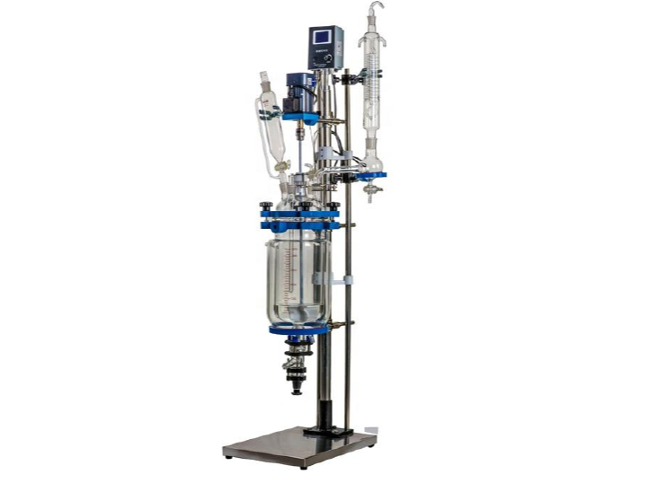 Реактор стеклянный лабораторный химический GR-2L с рубашкой 2 л отличается своей компактностью при стандартной функциональности. Поставляется с полным набором комплектующих, необходимых для работы аппарата. Это реакционный сосуд, крышка с тефлоновыми отверстиями для присоединения внешнего оборудования, мешалка, блок управления, холодильник, капельная воронка, клапаны, монтажная стойка на платформе и крепления.