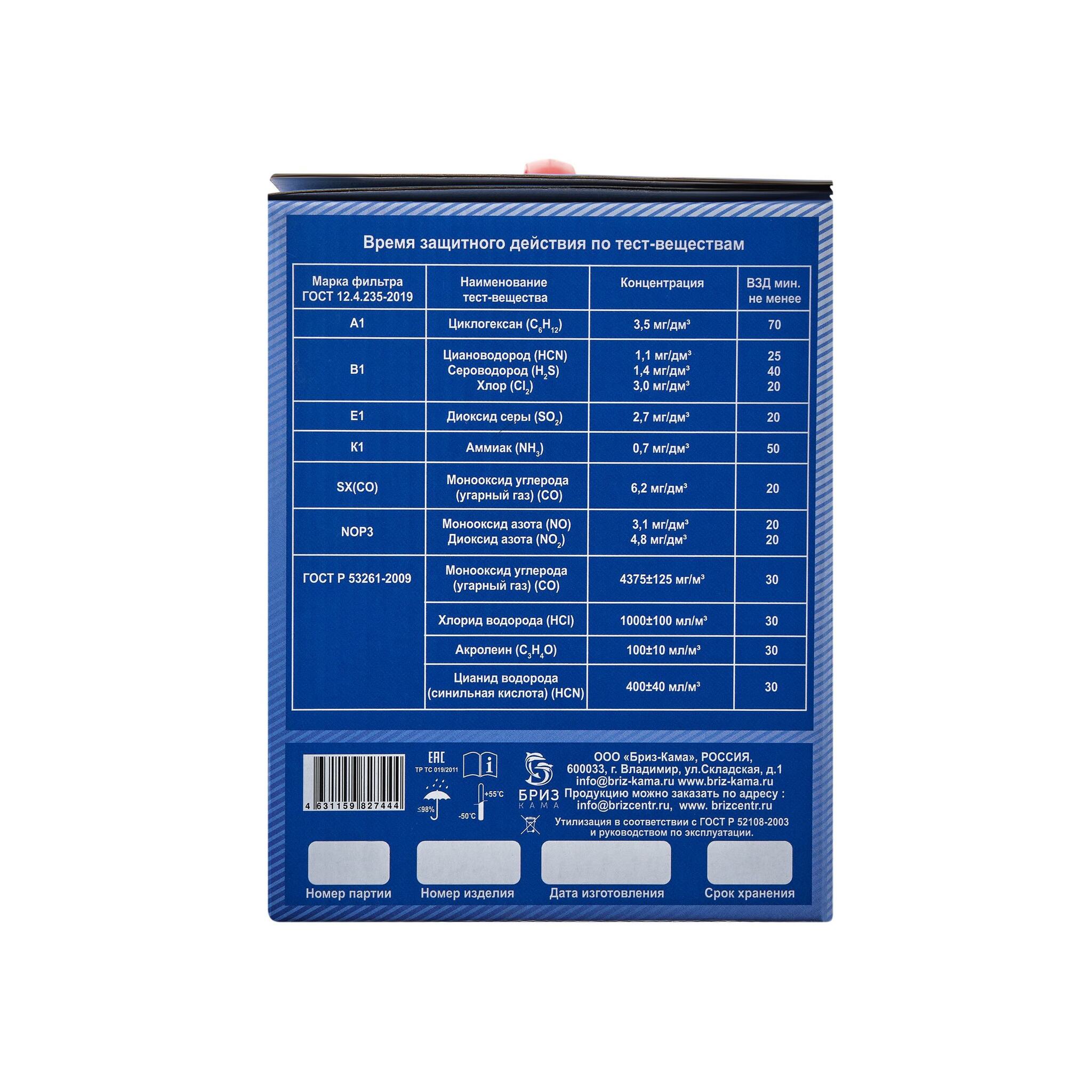 Самоспасатель «БРИЗ®-3401(ГДЗК)» имеет класс 3 - высокая эффективность по ГОСТ 12.4.285-2015 и среднюю эффективность по ТР ТС 019/2011.