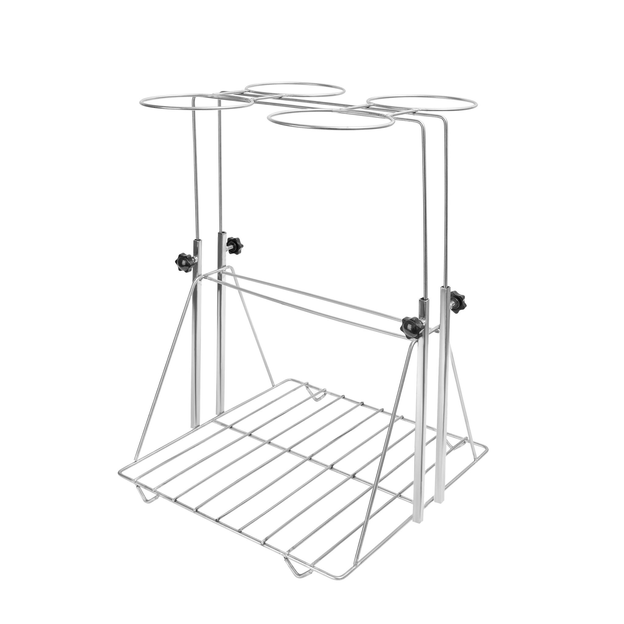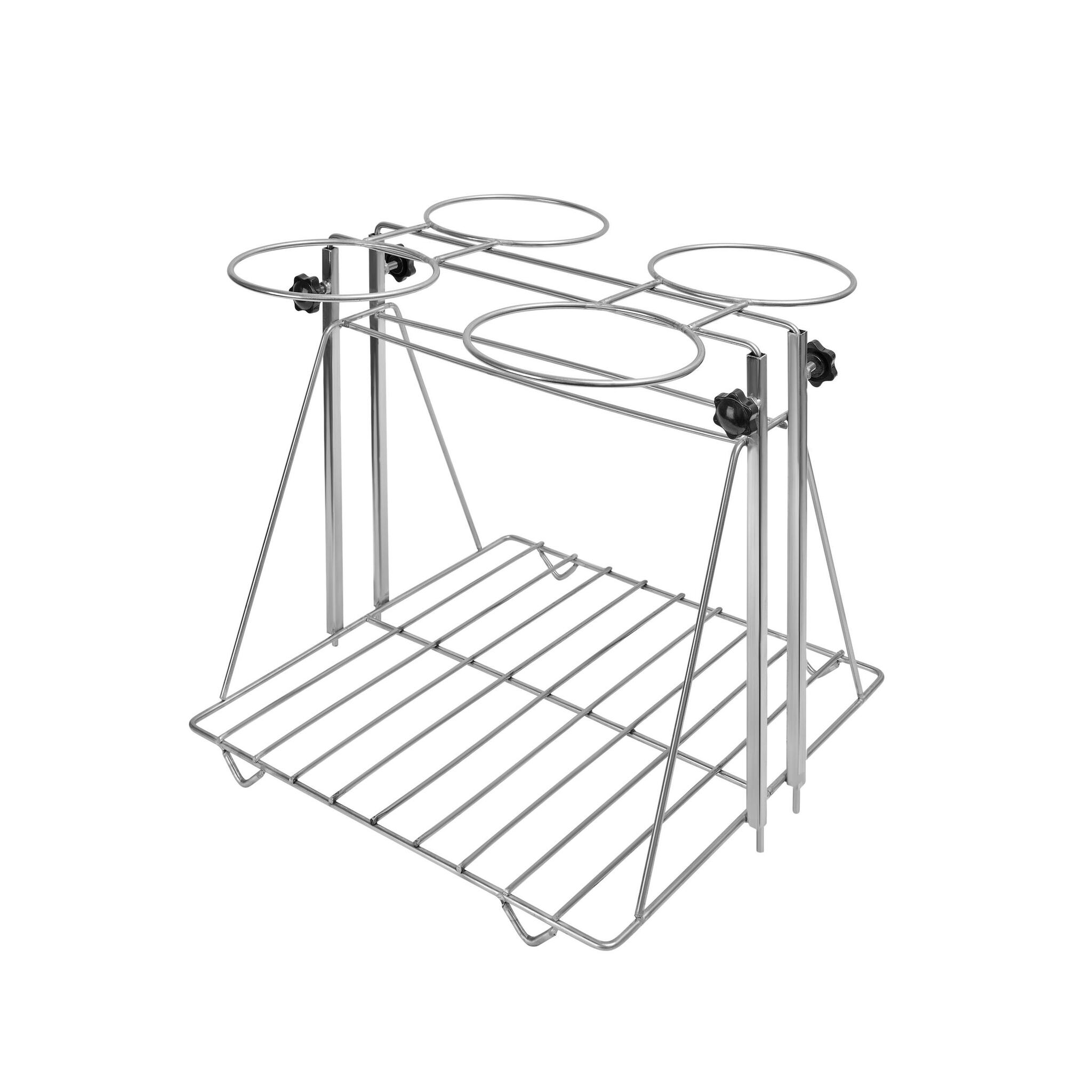 На стенде можно закрепить две воронки. Нижний элемент оборудования — решетка, которая используется в качестве подставки для другой лабораторной посуды, что облегчает процесс работы.
